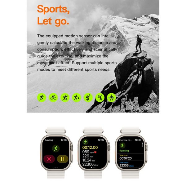 Top quality T800 Ultra 2 Smart Watch Comes with several tracking features Features IP67 rated waterproof Features Bluetooth Comes with the 240 x 240 Touch screen display Easy to use Comfortable to wear Record your sleep quality and sleep cycle (deep sleep, light sleep, etc.) to help you understand and improve your sleep quality and achieve high-quality sleep. Precise measurement and health protection